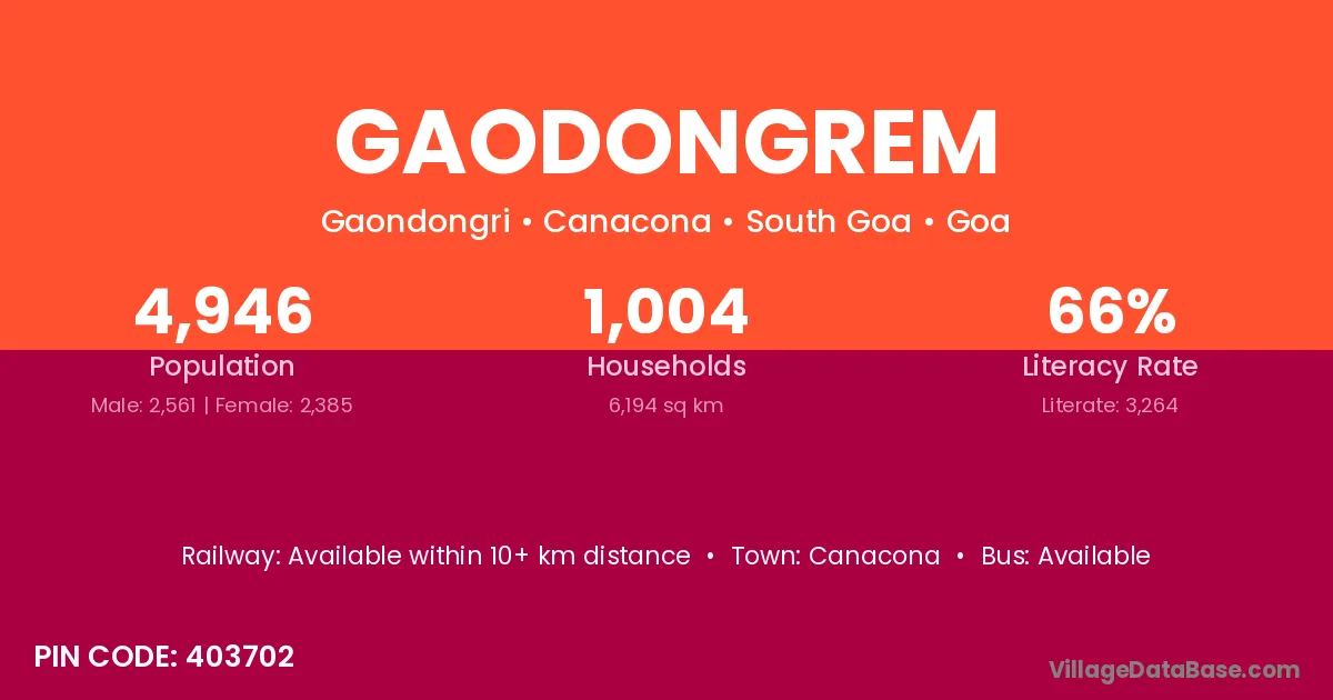 Canacona is the nearest town to Gaodongrem village for major economic activities