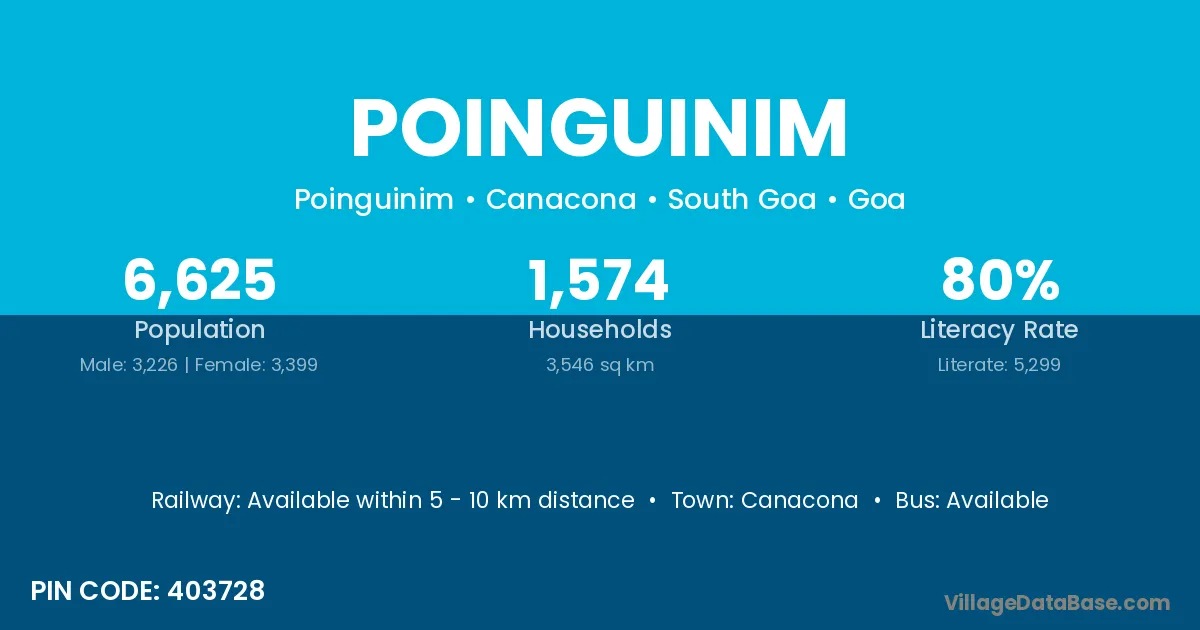 Canacona is the nearest town to Poinguinim village for major economic activities