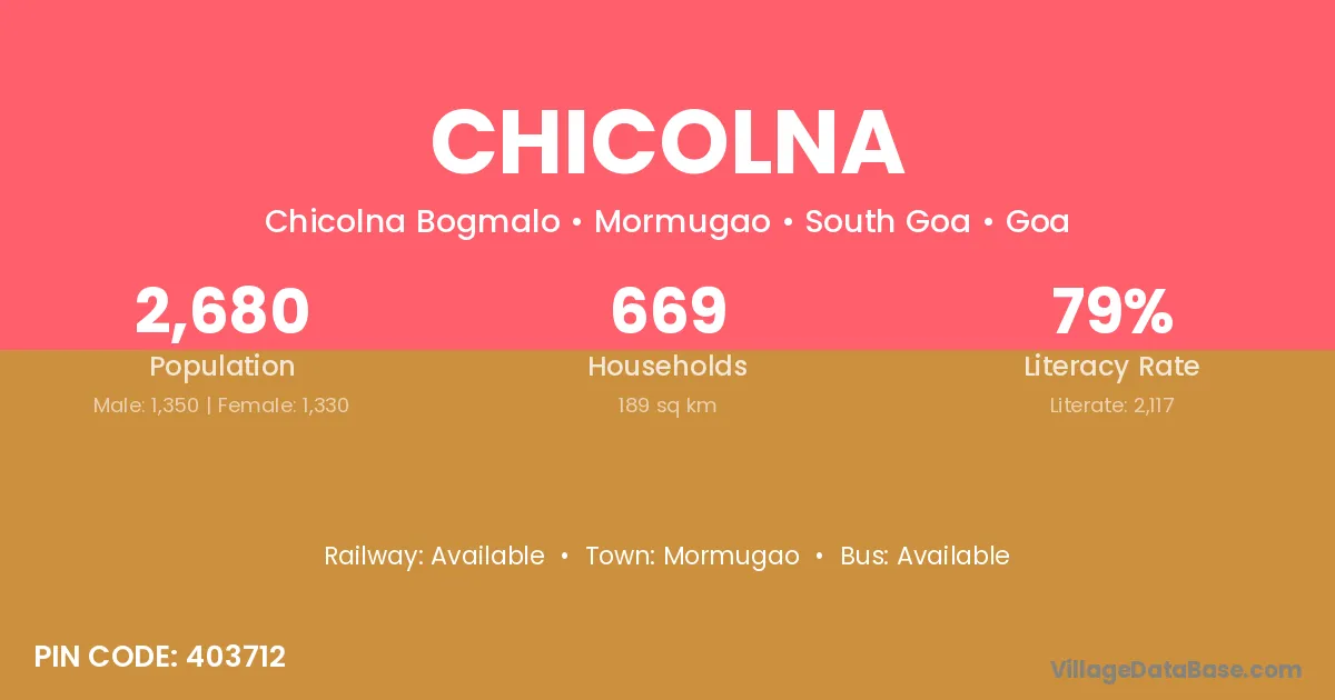 Mormugao is the nearest town to Chicolna village for major economic activities