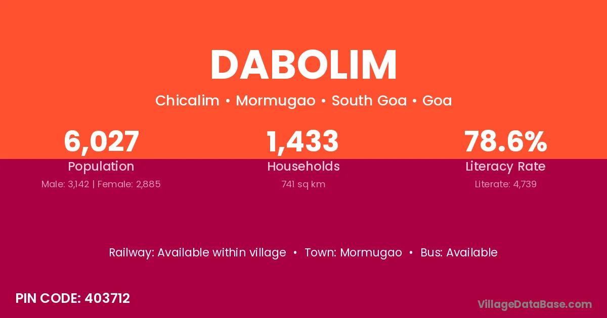 There are approximately 1,433 households in Dabolim village.