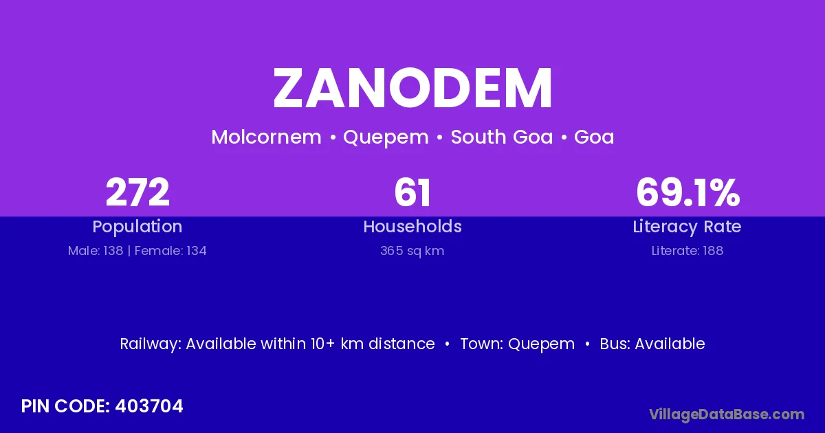 Zanodem village has a total population of 272 people, of which 138 are males and 134 are females.