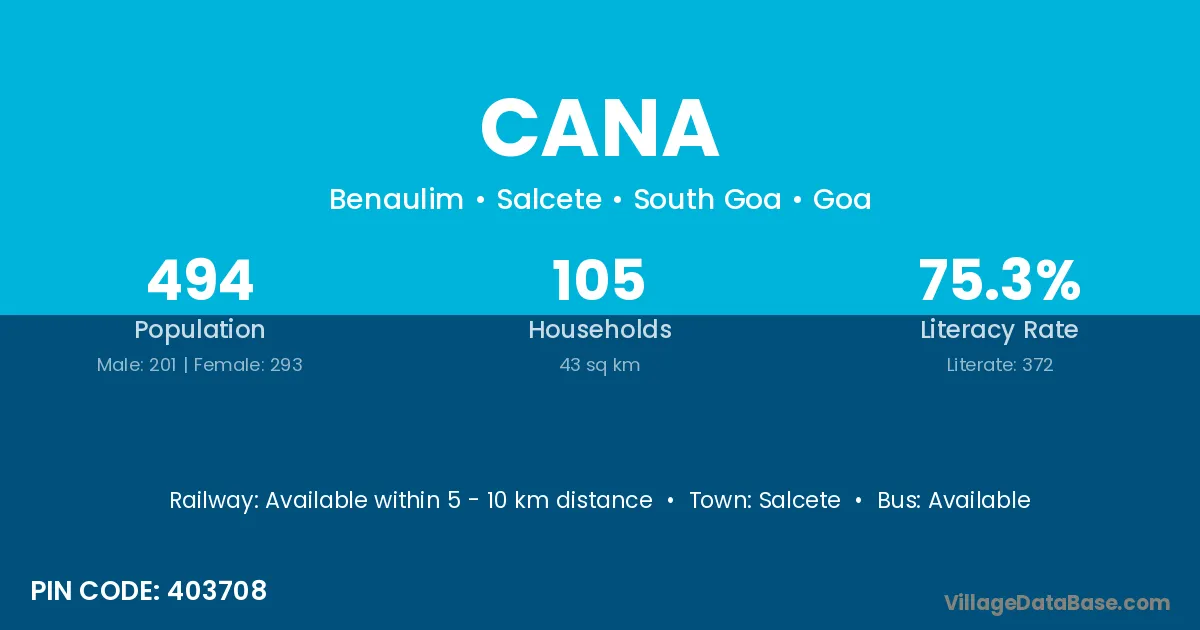 Cana village has a total population of 494 people, of which 201 are males and 293 are females.