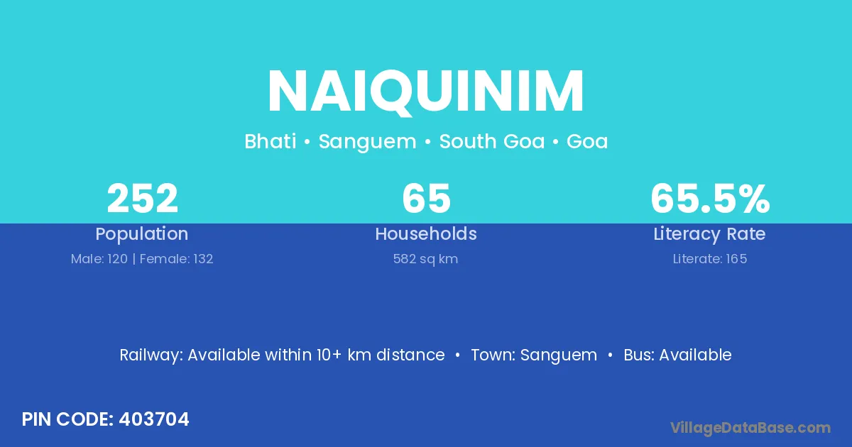 Sanguem is the nearest town to Naiquinim village for major economic activities