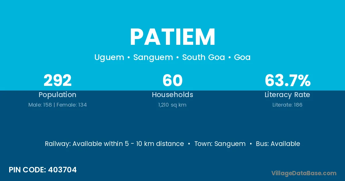 Sanguem is the nearest town to Patiem village for major economic activities