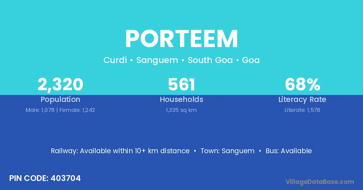 Sanguem is the nearest town to Porteem village for major economic activities