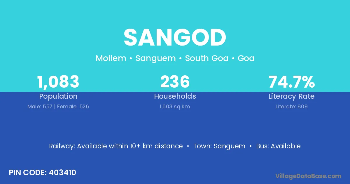 Sanguem is the nearest town to Sangod village for major economic activities
