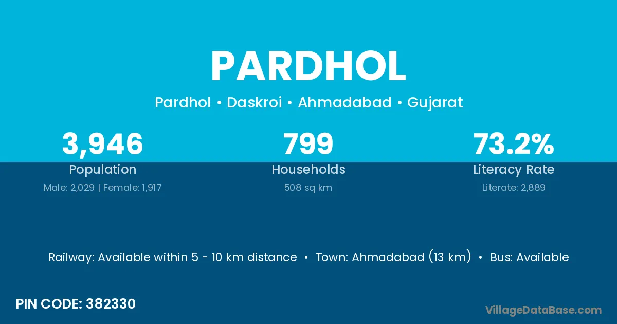 According to Census 2011 information, the village code of Pardhol village is 382330.