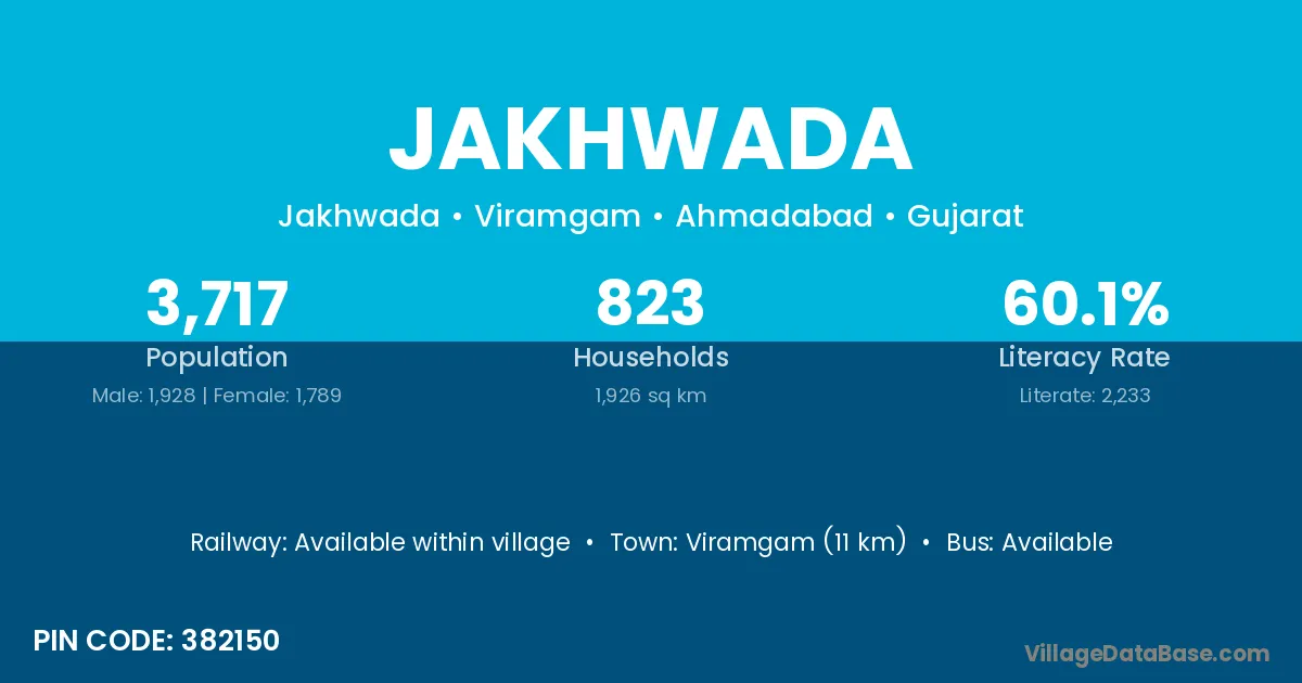 Viramgam (11 km) is the nearest town to Jakhwada village for major economic activities and is located approximately 11 km away.