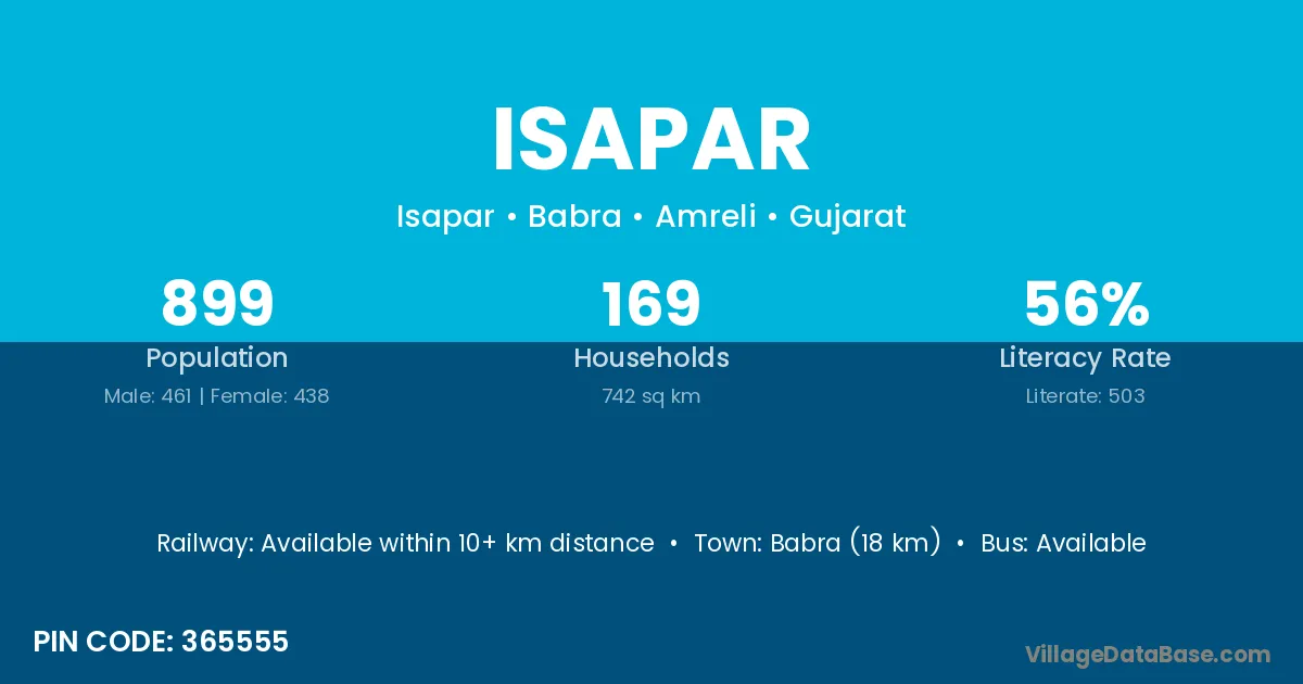 Babra (18 km) is the nearest town to Isapar village for major economic activities and is located approximately 18 km away.