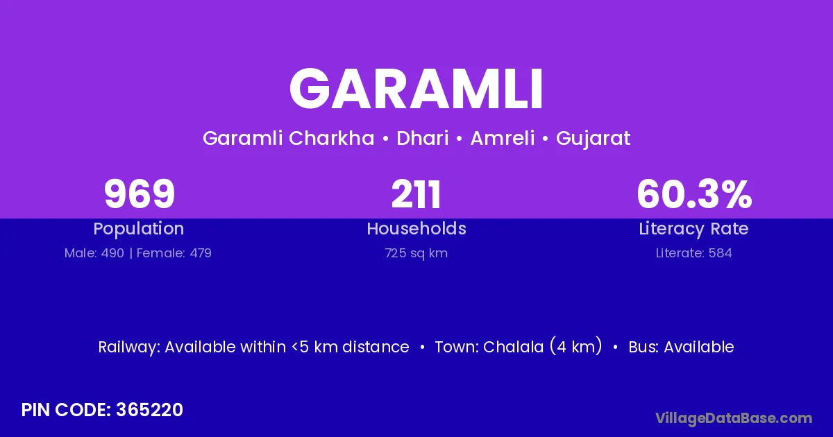 Garamli village has a total population of 969 people, of which 490 are males and 479 are females.