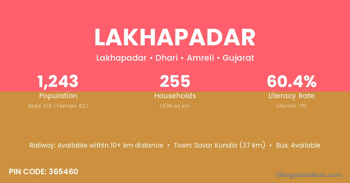 Savar Kundla (37 km) is the nearest town to Lakhapadar village for major economic activities and is located approximately 37 km away.