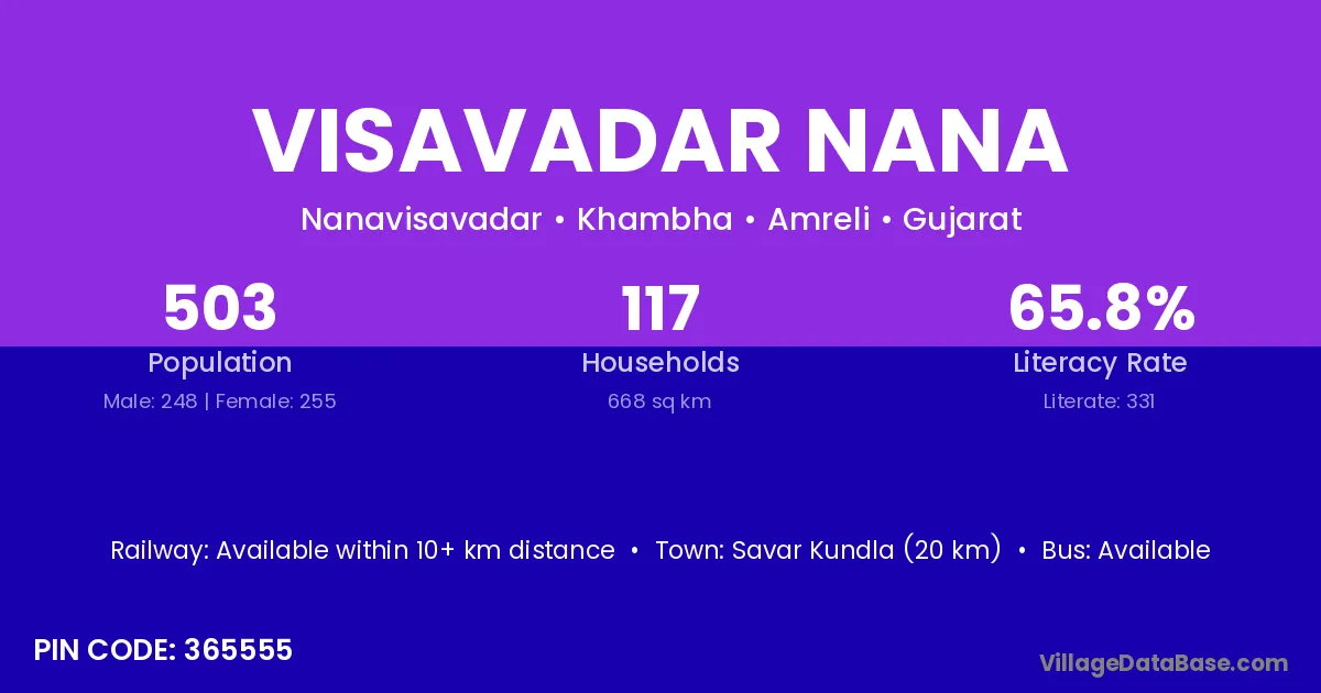 Visavadar Nana village has a total population of 503 people, of which 248 are males and 255 are females.