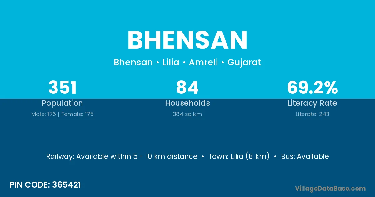 Lilia (8 km) is the nearest town to Bhensan village for major economic activities and is located approximately 8 km away.