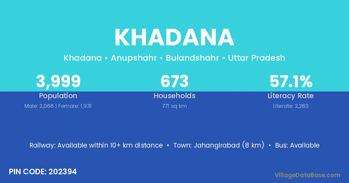 Khadana village has a total population of 5,481 people, of which 2,900 are males and 2,581 are females.
