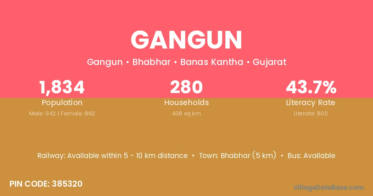 According to Census 2011 information, the village code of Gangun village is 385320.
