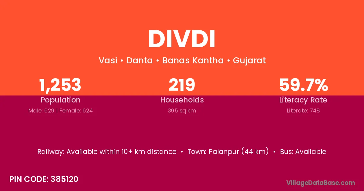 Divdi village has a total population of 1,253 people, of which 629 are males and 624 are females.