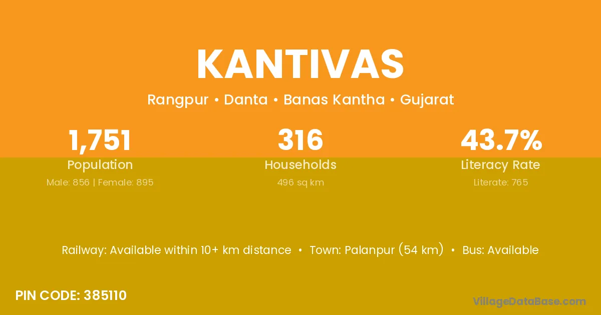 Palanpur (54 km) is the nearest town to Kantivas village for major economic activities and is located approximately 54 km away.