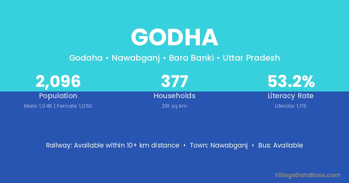The literacy rate of Godha village is 50.29%. Male literacy stands at 63.43% and female literacy at 36.97%.