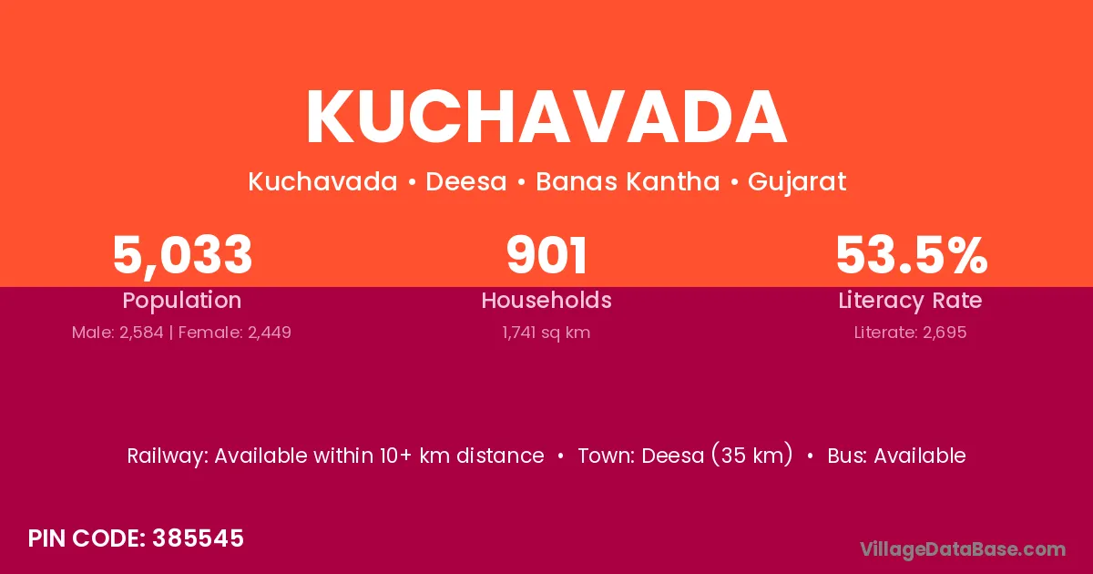 Deesa (35 km) is the nearest town to Kuchavada village for major economic activities and is located approximately 35 km away.