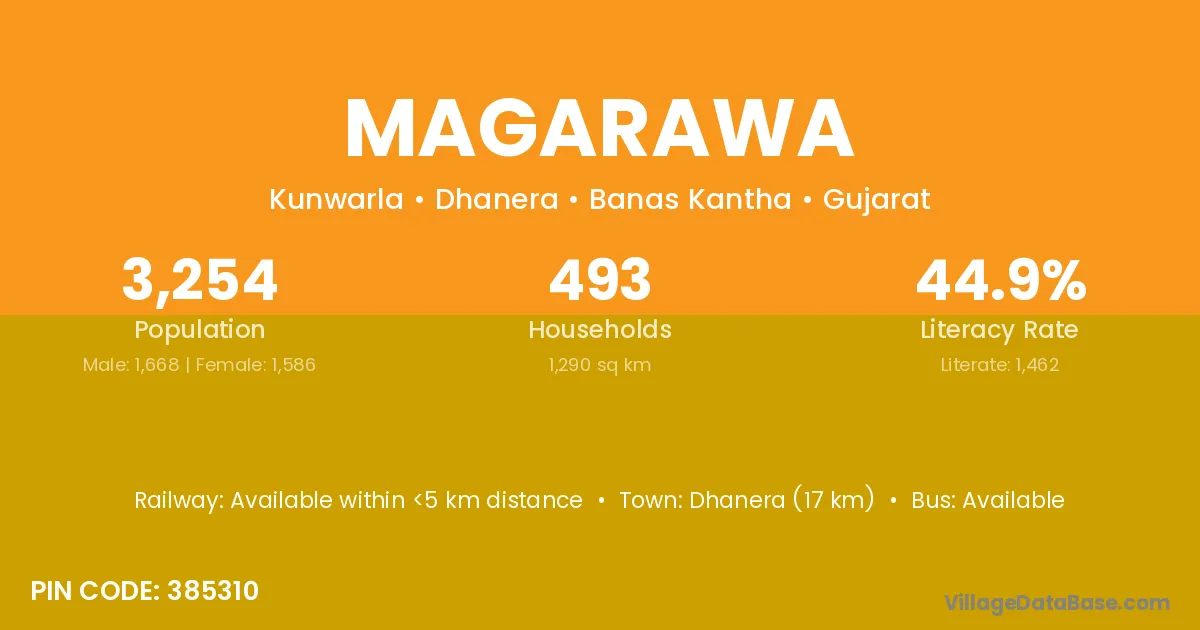 Dhanera (17 km) is the nearest town to Magarawa village for major economic activities and is located approximately 17 km away.