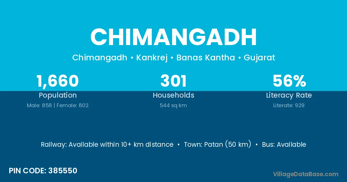 Patan (50 km) is the nearest town to Chimangadh village for major economic activities and is located approximately 50 km away.