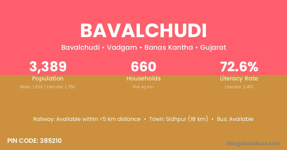 Sidhpur (18 km) is the nearest town to Bavalchudi village for major economic activities and is located approximately 18 km away.