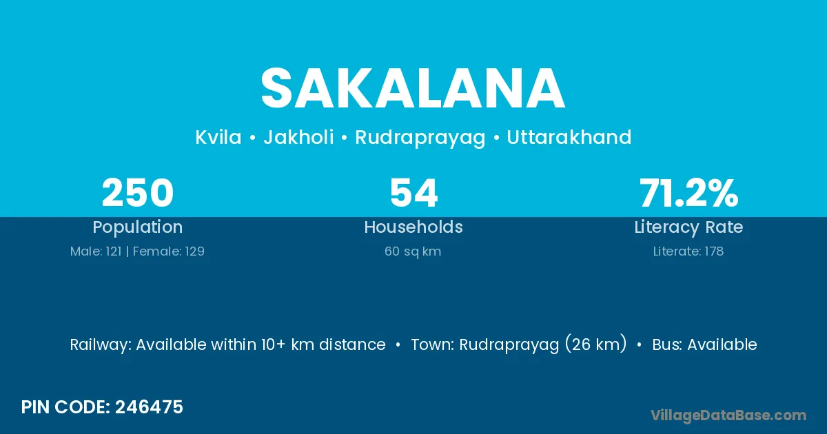 The literacy rate of Sakalana village is 66.93%. Male literacy stands at 77.68% and female literacy at 55.69%.