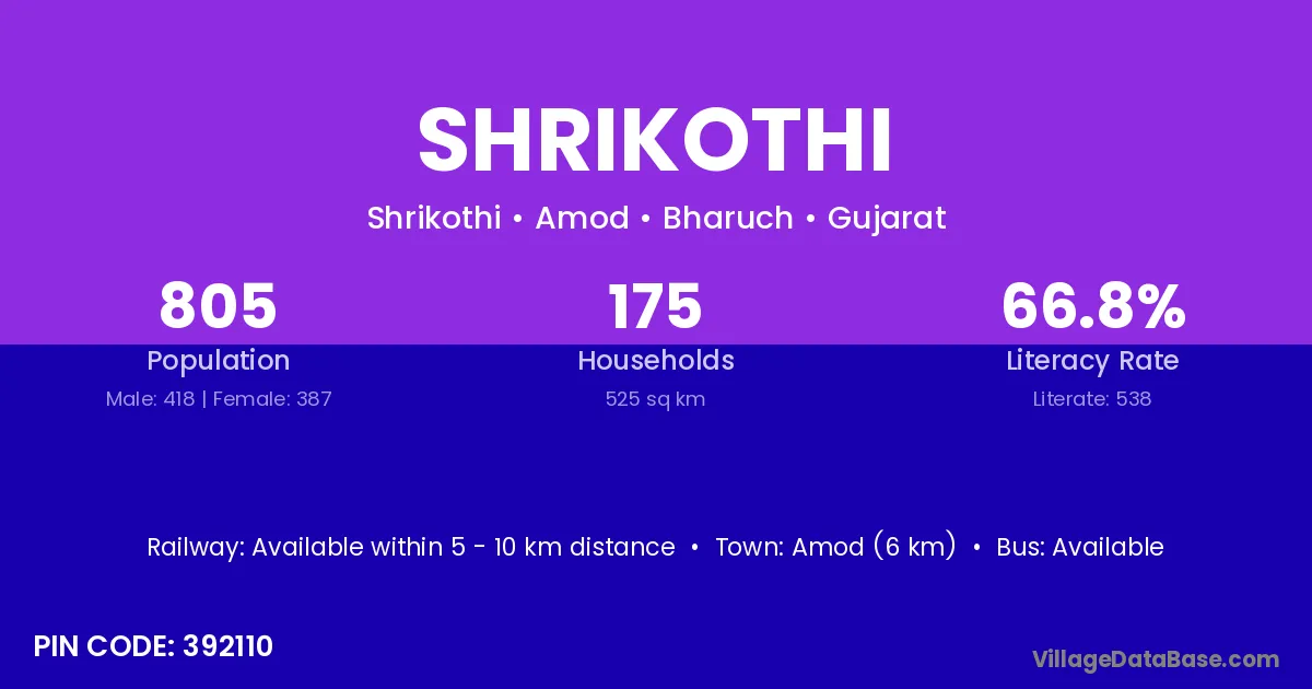 According to Census 2011 information, the village code of Shrikothi village is 392110.