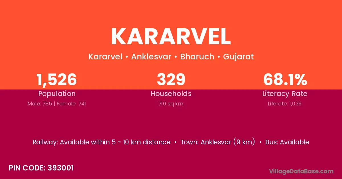 Anklesvar (9 km) is the nearest town to Kararvel village for major economic activities and is located approximately 9 km away.