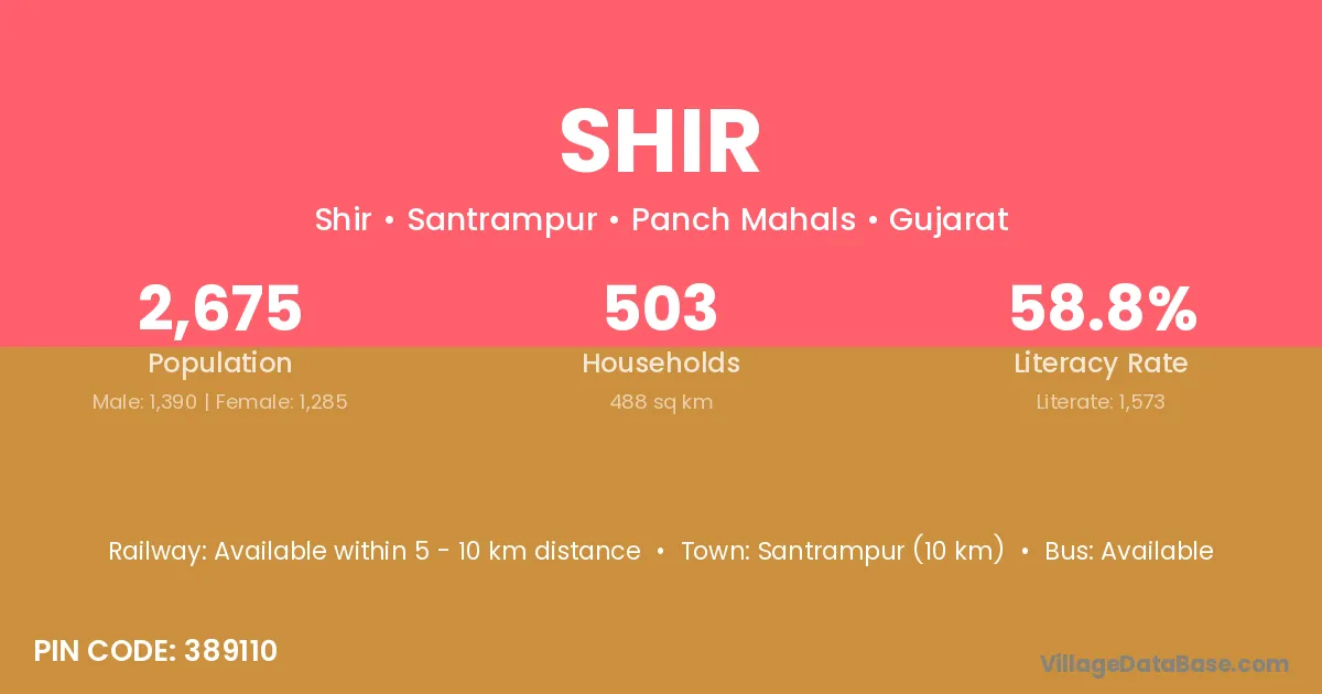 According to Census 2011 information, the village code of Shir village is 393110.