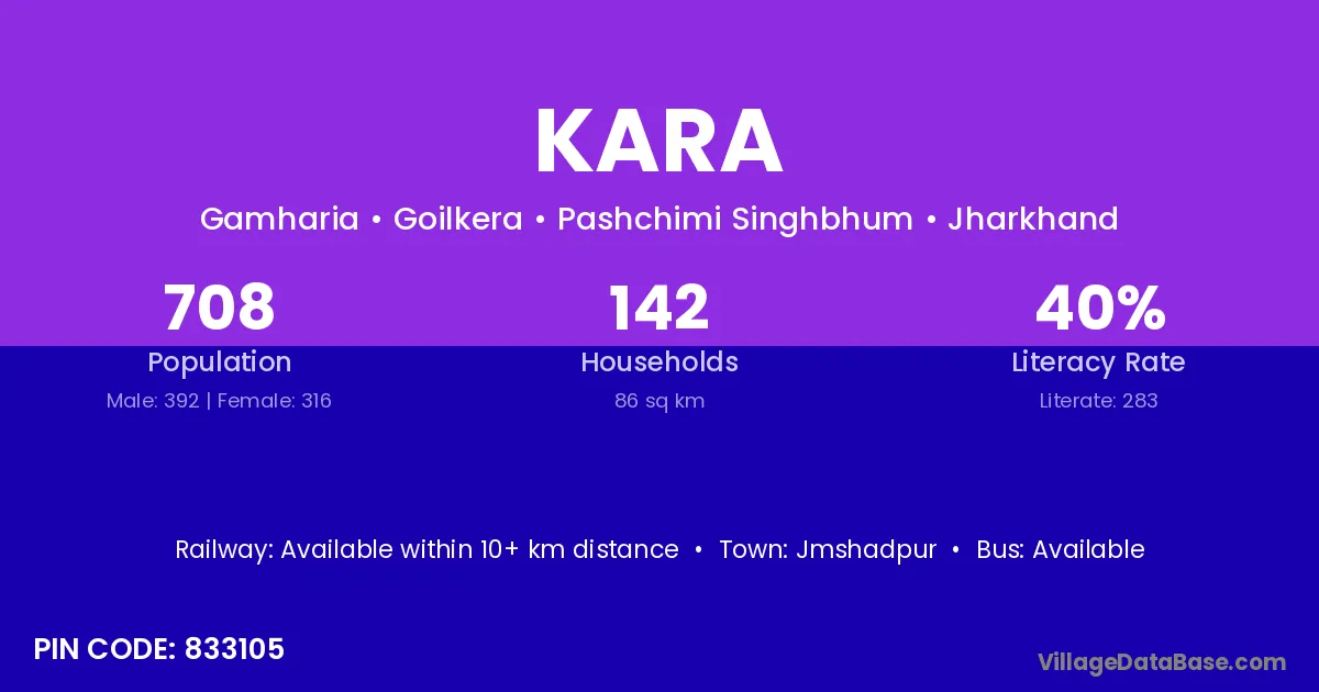 According to Census 2011 information, the village code of Kara village is 393135.