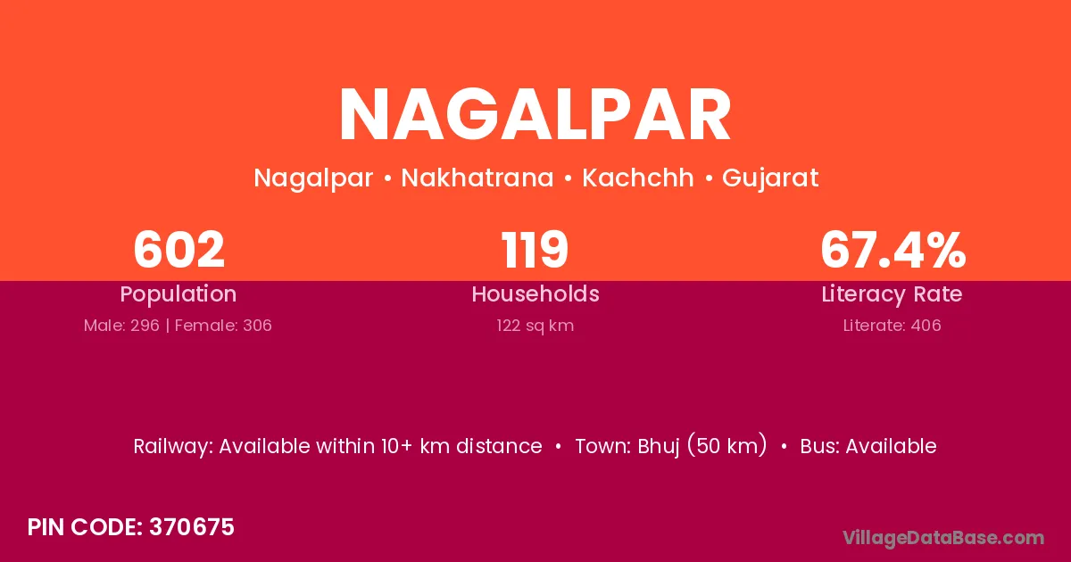 Botad (6 km) is the nearest town to Nagalpar village for major economic activities and is located approximately 6 km away.