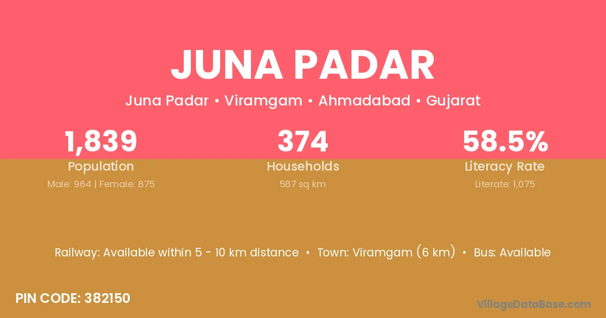 Bhavnagar (18 km) is the nearest town to Juna Padar village for major economic activities and is located approximately 18 km away.