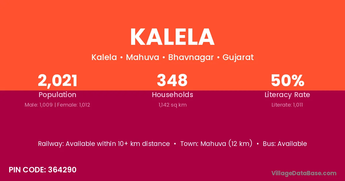 Mahuva (12 km) is the nearest town to Kalela village for major economic activities and is located approximately 12 km away.
