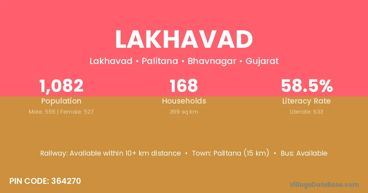 Palitana (15 km) is the nearest town to Lakhavad village for major economic activities and is located approximately 15 km away.