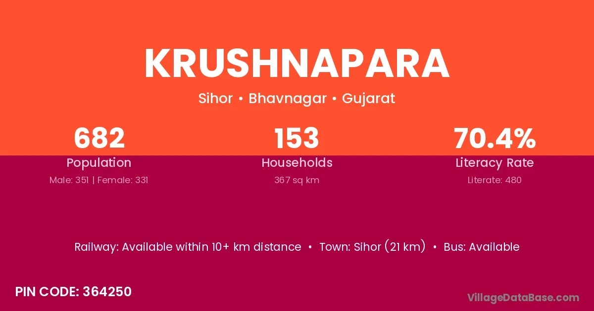Sihor (21 km) is the nearest town to Krushnapara village for major economic activities and is located approximately 21 km away.