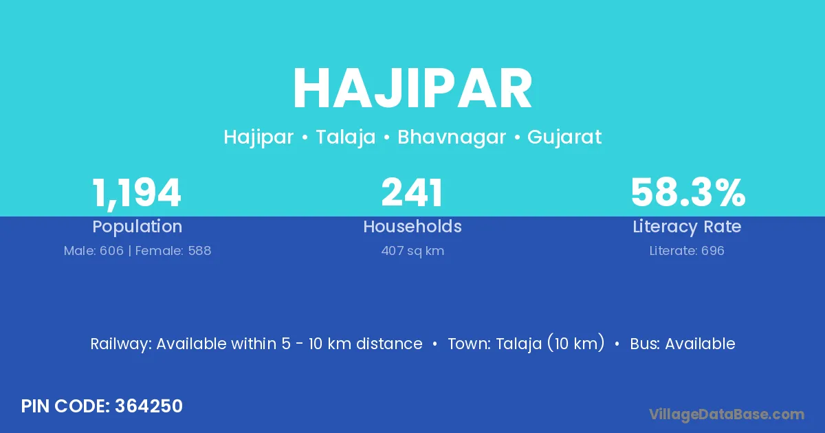 Talaja (10 km) is the nearest town to Hajipar village for major economic activities and is located approximately 10 km away.