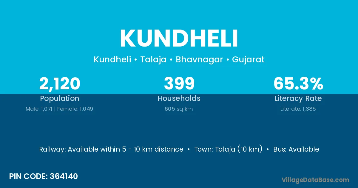 Talaja (10 km) is the nearest town to Kundheli village for major economic activities and is located approximately 10 km away.