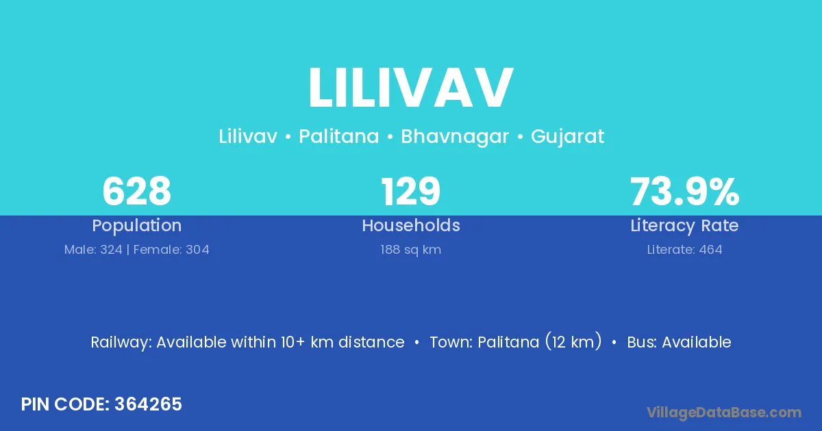 Talaja (3 km) is the nearest town to Lilivav village for major economic activities and is located approximately 3 km away.
