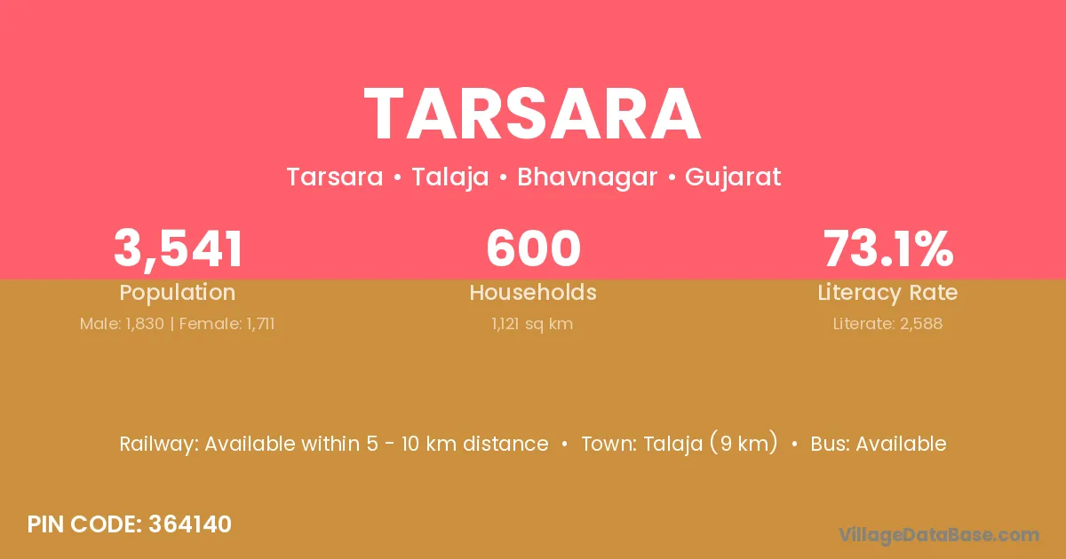Talaja (9 km) is the nearest town to Tarsara village for major economic activities and is located approximately 9 km away.