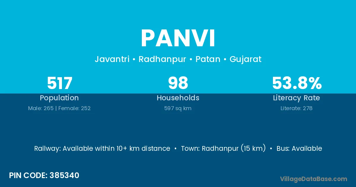 According to Census 2011 information, the village code of Panvi village is 364310.