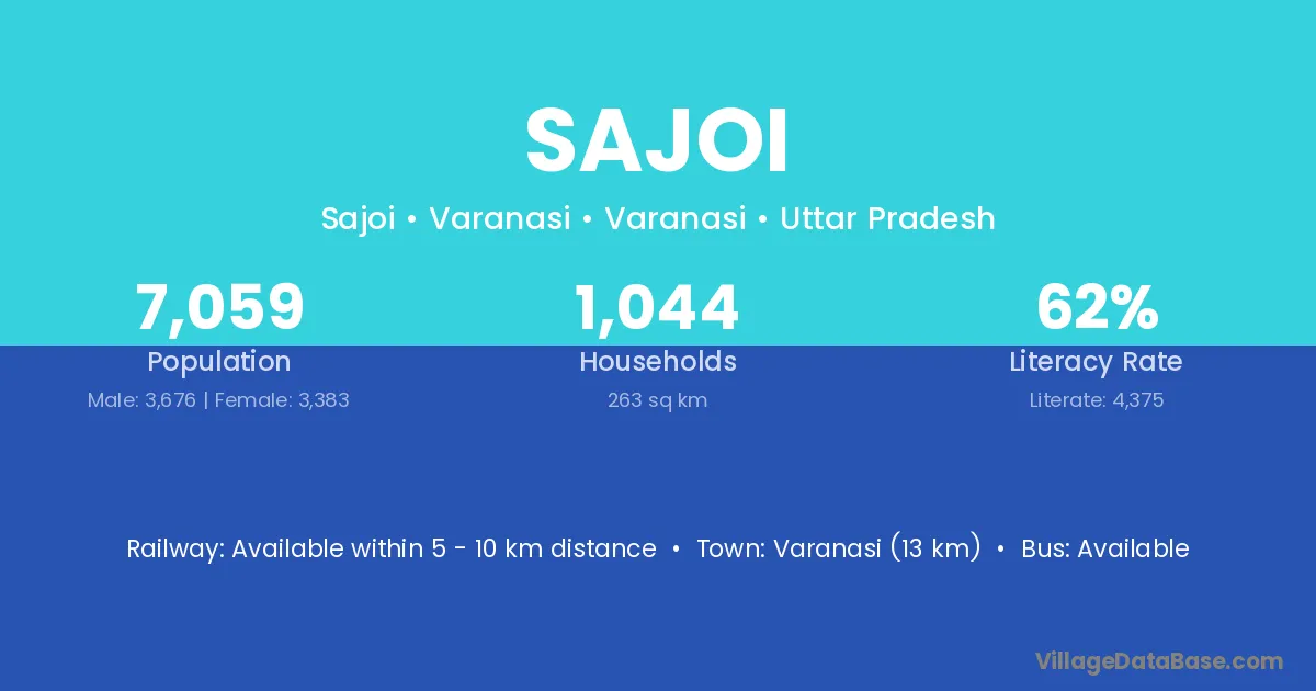 Sajoi village has a total population of 5,503 people, of which 2,780 are males and 2,723 are females.