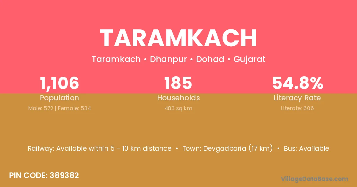 Devgadbaria (17 km) is the nearest town to Taramkach village for major economic activities and is located approximately 17 km away.