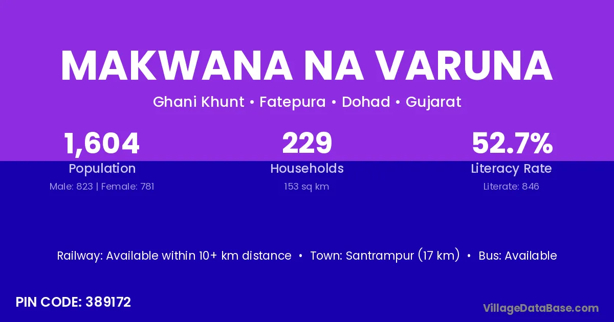 Santrampur (17 km) is the nearest town to Makwana Na Varuna village for major economic activities and is located approximately 17 km away.