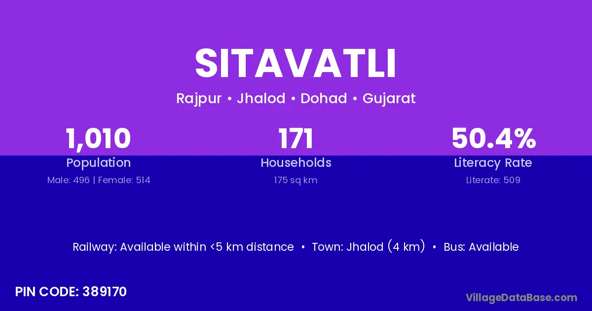 Sitavatli village has a total population of 1,010 people, of which 496 are males and 514 are females.