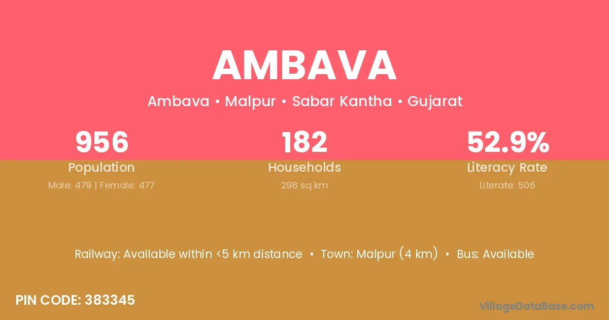 Limkheda (7 km) is the nearest town to Ambava village for major economic activities and is located approximately 7 km away.