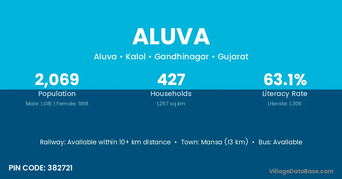 Mansa (13 km) is the nearest town to Aluva village for major economic activities and is located approximately 13 km away.