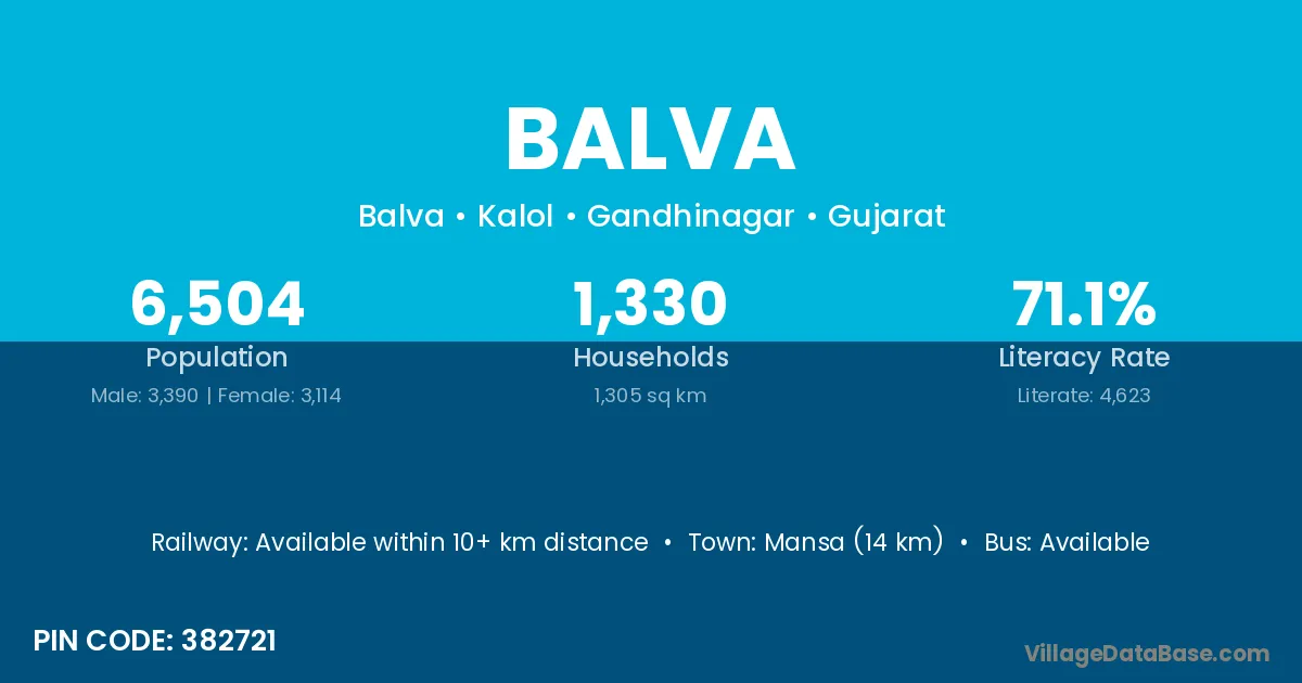 Mansa (14 km) is the nearest town to Balva village for major economic activities and is located approximately 14 km away.
