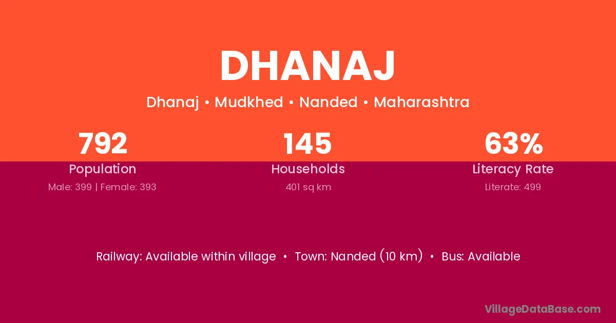 The literacy rate of Dhanaj village is 71.20%. Male literacy stands at 79.83% and female literacy at 61.97%.