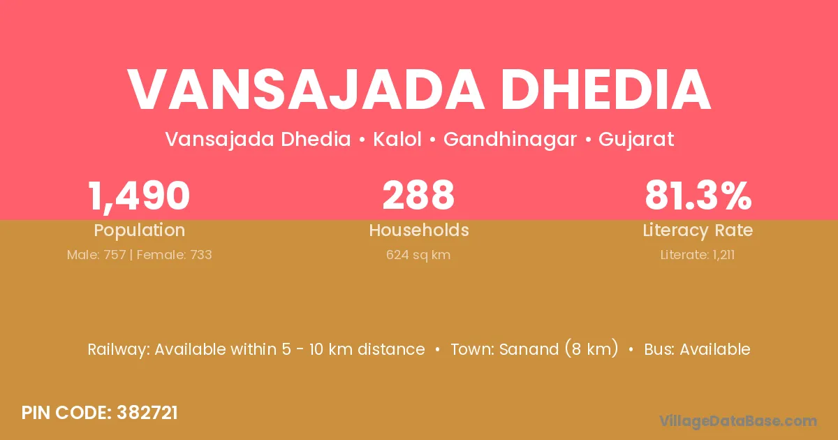 According to Census 2011 information, the village code of Vansajada Dhedia village is 382721.
